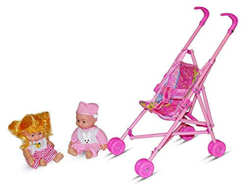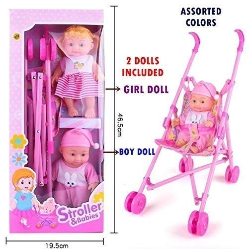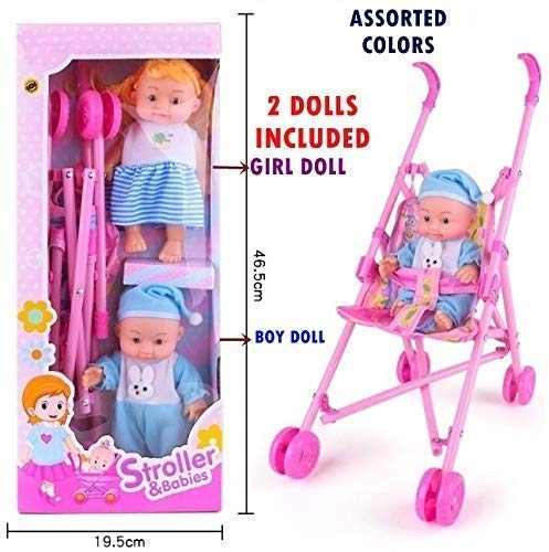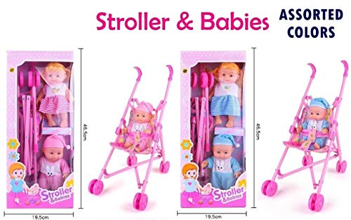 Stroller with Doll, Real Moving Stroller Toy for Kids, Pretend Play Toy Set (Random Color Dispatch) RVM Toys presents a unique play toy for your kids. A stroller with baby doll toy Moving Stroller: Kids will have unlimited fun by taking their buddy to all parts of the hours. The stroller moves in all directions and baby sit comfortably in this. Kids can play with the baby alone as well Baby is made of soft material and stroller is made of metal rods and cloth Comes with 2 Doll – 1 Baby girl Doll and 1 Baby Boy Doll. Perfect birthday gift for children, Keep kids busy with this Stroller Baby Doll Toy Set. Great pretend play toy with unlimited fun