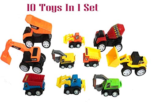 WISHKEY Plastic 10 Pcs Construction Vehicles Pull Back Toy Cars Playset,Truck Model Kit for Children Toddler Kids Mini Engineering Toys (Pack of 10, Multicolor) Toy Review India (Iknoor World )