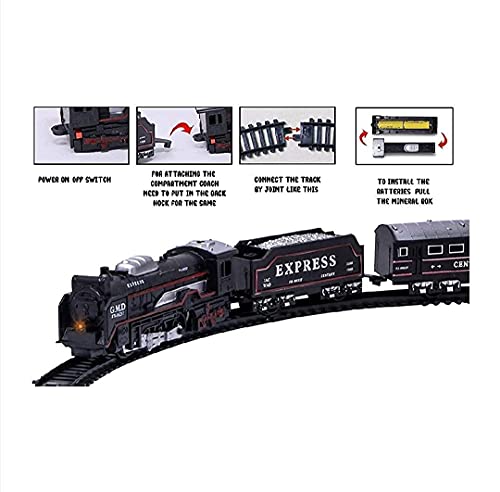 Vintage Toy Train Set with Tracks. Comes With Realistic Sounds, Flashlight and Smoke Effect as The Train Chugs On The Tracks.