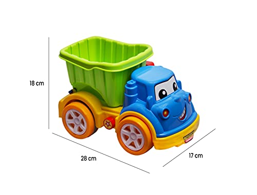 Dump Truck measures 30 cm x 18 cm x 17 cm ; Recommended for playing indoors and outdoors