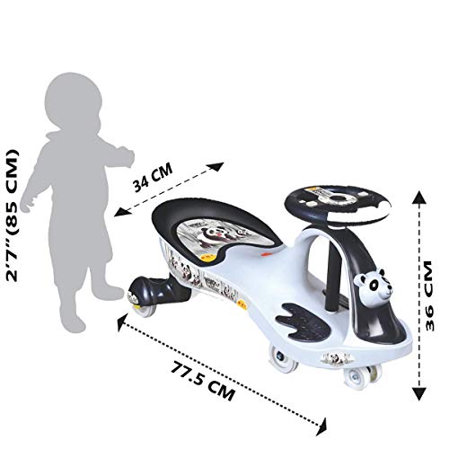 This is Toyzone magic car for children above the age of 3 years. This magic car is safety certified and is made up of BPA free plastic to ensure safety. It’s strong, sturdy and durable and runs with bearing function. This magic car has music and light in it’s steering handle. No pedal, no gears, no electricity is required to run this magic car, just turn the steering left and right and there you go. This magic car has good space on seat and foot rest for 1 rider only for their comfort and safety. This product required assembly and it must be assembled in the supervision of adults only. The front wheel will not touch the ground. Have fun with Toyzone – true childhood companion. Battery Operated : No