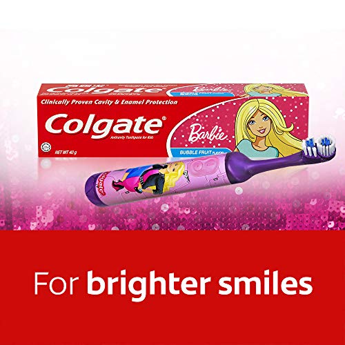 Kids must brush their teeth at least 2 times a day and Colgate Kids Battery Operated Toothbrush is a fun way to encourage good oral care habits early on! The extra soft bristles, specially designed for kids, ensure gentle yet effective cleaning. This attractive Barbie toothbrush comes with a small oscillating head, which easily fits their small teeth and 2 replaceable AAA Alkaline batteries, which goes a long way. Easy on/off buttons ensures comfort brushing while the slim handle is easy to hold.