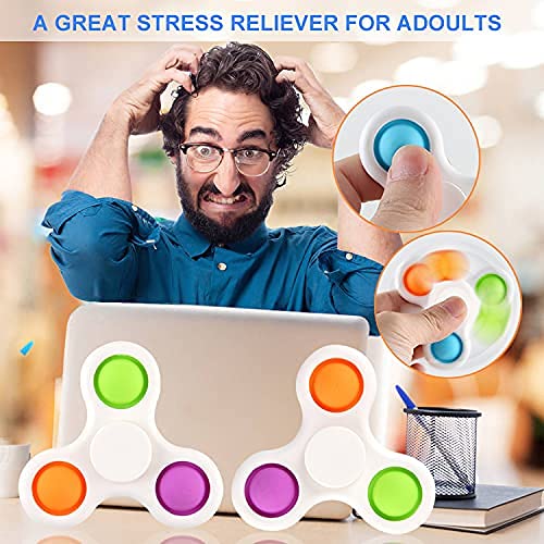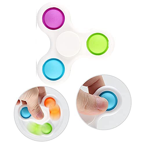 【Pleasant Popping Sound】 This push- poo squeeze toy has a cute shape and multicolored colors . Just press the colorful petal down and they make a slight popping sound, then flip it over and start again! Moderate elasticity and pleasant whirling sound give you an excellent sensory experience. Endlessly reusable and washable, easy to carry. Kids can play anytime, and anywhere, more fun in life. Everyone loves this popping fidget spinner!
