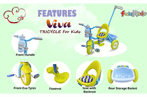FunRide Tricycle for Kids – 2-in-1 VIVA DELUXE Tri-cycle with Sipper, Removable Parental Control Handle – Trikes for Boys and Girls 1 Years – 4 Years – (Weight – Upto 25 Kg) – Perfect Tri-Cycles for Indoors and Outdoors