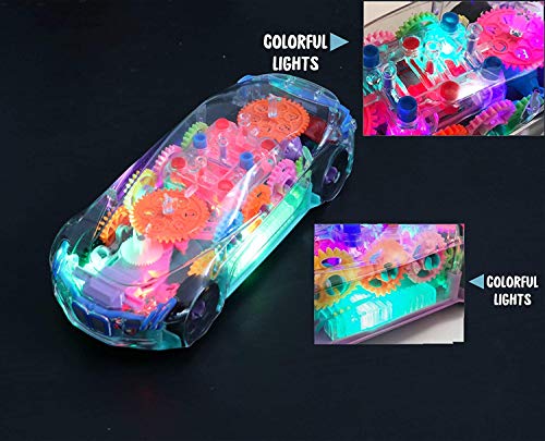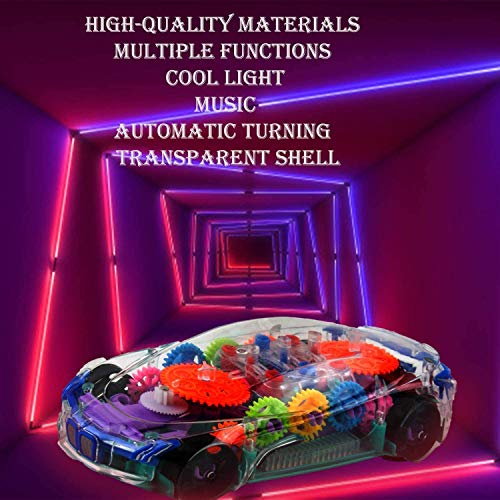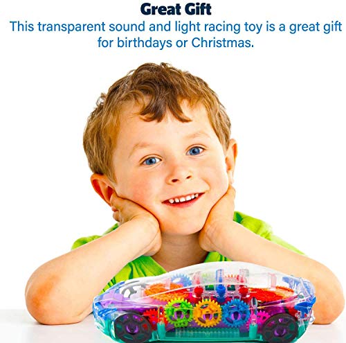Transparent Concept Racing Car with 3D Flashing Lights car with functions: Forward/ Backward, Stop. Unique Design – Transparent design, one Can see the gear inside, helps the kids to know mechanical concept.