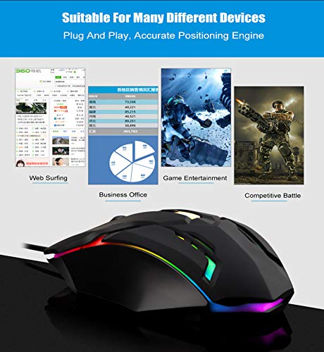 Wired Gaming Mouse, 4 Buttons, Ergonomic RGB Gaming Mouse with Chroma Backlit for PC, Laptop, and Notebook