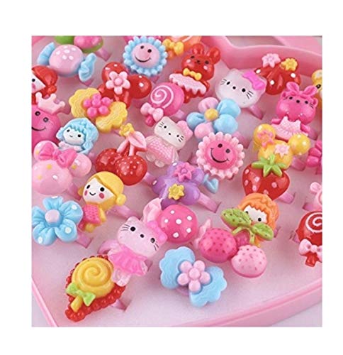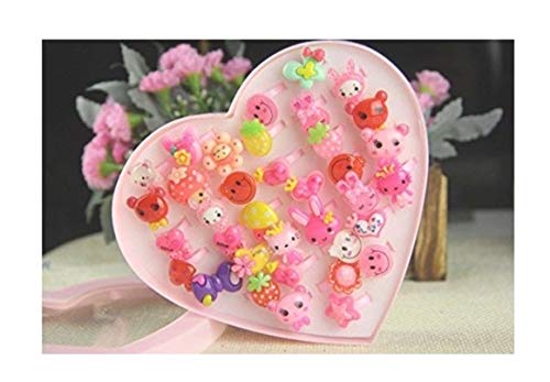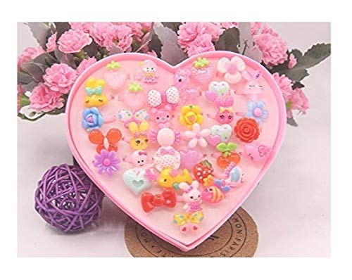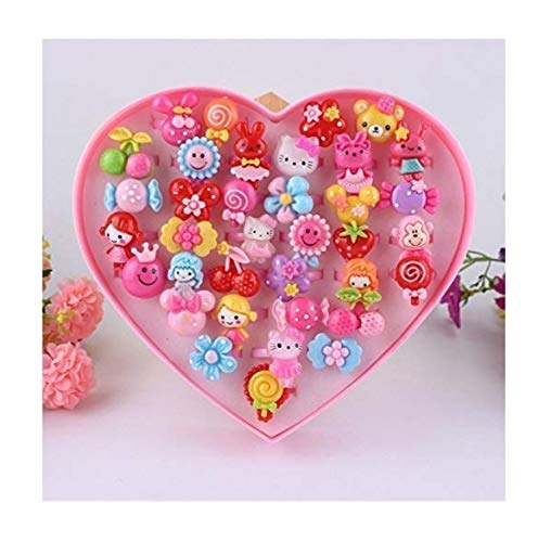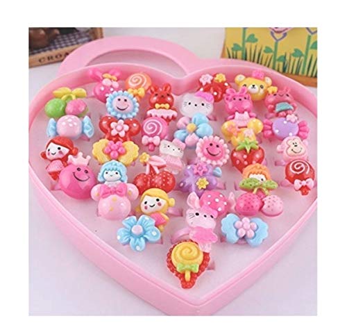 UNIQUE DESIGN– beautiful kids cartoon shaped plastic play toy adjustable fancy rings for girls contain 36 pcs durable set made up of high quality plastic and crafted unique and attractive that will make your daughters mesmerized.