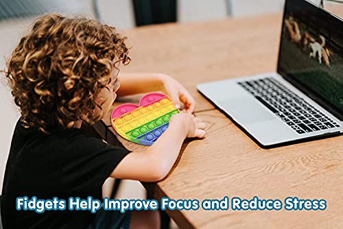 Color: Rainbow Heart Bubble Fidget Pops – The Best Bubble Popping Sensory Toys – Anxiety Relief For Kids! Our Fidget toys are loved by kids, parents, therapist and teachers! These toys get kids happy & engaged and can keep them focused while keeping their hands busy. Fine Motor Skills: can improve as kids push and pop the bubbles to increase finger strength and dexterity. Helps improve pre-writing and everyday life skills. Auditory Discrimination and Stimulation engage as kids pop and push it to make fun sounds. Educational Games – guide your child as they use the bubble pops in turn taking games. Use to teach colors, counting, and learning letters. Therapy Toys: OT, Speech, and Play therapist use to inspire bilateral coordination, crossing the midline, hand-eye coordination, and cause and effect. Children with Autism, ADHD, ADD, SPD, and other special needs can increase abilities with the right tools. How to Play: Press the bubbles down, then flip it over and start again! One side makes a louder popping sound than the other. Use for games, counting, tossing for accuracy and lots more that you’ll come up with as you play. ZOOM Call Fidget Toy: Keeping kids focused while on school zoom is a challenge. Our bubble fidget pops can keep fingers busy without distracting them from the screen. Gifts For Kids: Push Pop Bubble Fidget Pops make a great gift for toddlers and school age boys and girls. They make excellent prizes for teachers, party favors, and birthday and holiday gifts. Included: One Rainbow Heart Bubble Fidget Pop Size: 6″ x 5 1/2″ x .75″ Age: 3 Years and Up – Pop and Play fun for the whole family – toddlers, kids, tweens, teens and adults.