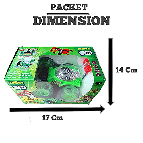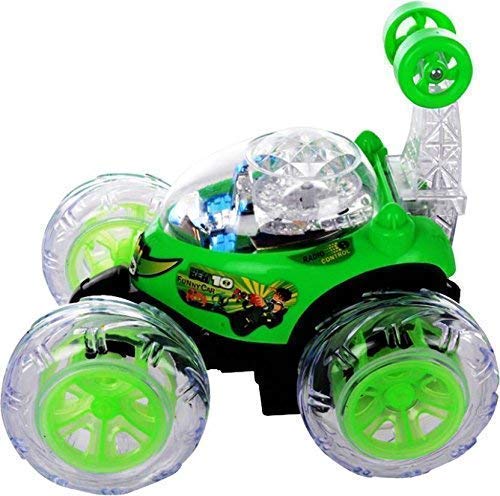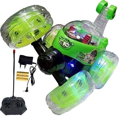 SHAKTI MART 360 Degree Run And Jump Rotating Ben 10 Car Material : Abs Plastic Recommended Age : 3 Years And Up Battery Use : Required Special Features : This Remote Control Car Can Go Ahead Or Back Up Stop Front Wheels Left Reverse Right Reverse;360 Degree Spinning And Flips. It Is Made Out Of High Quality Durable Non-Toxic Abs Plastic Materials Completely Safe To Play For Children. The Shockproof Rubber Tires Are Easy To Overcome Any Outdoor Condition. Durable Flexible Wheel Rubber Tires With Vacuum Concave-Convex Texture Anti -Shock Strong Grip Allows It To Drive In High Speed On All Kinds Of Terrains. It Has Double Sides Design With Led Head Lights On Both Sides And Can Do 360 And 180 Degree Rotating Tumbling Spins And Flips With Forward Backward Turn Left Turn Right Movement. Other Details Wash Care : Clean With Cloth Package Content : 1 Car 1 Remote Control 1 USB Cable
