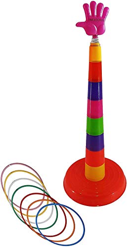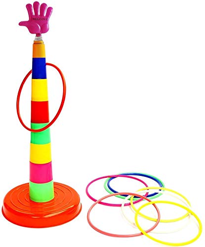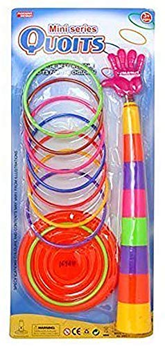 Ring Toss Quoits Throw Game Suitable for Family Garden Indoor Outdoor. Material: Plastic Color: Multi-color Contents: 1 detachable post with base, 8 rings Ring diameter: Length 9 Inch, Assembly total height: For kids 3+ years old Good for cultivating children’s imagination, developing eye-hand coordination, promoting operational ability, exercising thumbs and muscle toughness Ideal gift for family game, party supplies Package Includes: A set of Ring Toss Toys WARNING: Small parts Not for children under 3 years.