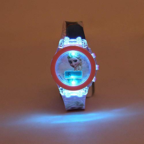 Beautiful Frozen Theme Digital Glowing LED watch for girls.Best Gift Watch and Toy.Very Exciting and Useful Gift.Made from high quality material, Soft and comfortable. it will help kids describe time from a variety of angles and learn how to read time, develop good habits for kids.Led Light makes time easy to read at nights and in the darkness. it makes the watch quite shinning and durable.