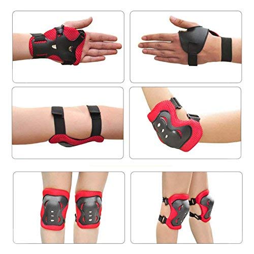 New Kids Roller Skating Knee Elbow Wrist Protector Guard Pads 6pcs/set kit Children Skateboard Wheel Slide Protection Pads Description: High quality protective cushion, designed for safety and comfort Made of durable, soft EVA padded material with sturdy plastic plates Knee pads and elbow pads are held in place with two elastic velcro straps Wrist cushion is held in place with two velcro straps Adjustable size Suitable for skateboarding, cycling, mini-riding and other extreme sports Size (L x W): Knee Cushion: Approx. 5 1/4 * 4 inch (13.3 * 10 cm) Elbow pad: Approx. 4 1/2 3 * 3/4 inches (11.4 * 9.5 cm) Wrist Pad: Approx. 5 * 3 1/4 inch (12.7 * 8.3 cm) Material: PVC / Sponge Color: Pink / Black Red / Blue (shown as photos) Package Included: 6 x Protection Pads