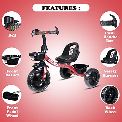 BABY TRICYCLE FOR KIDS WITH BASKET RED COLOUR KIDS TRICYCLE RECOMMENDED TRICYCLE FOR BABY GIRL OR TRICYCLE FOR BABY BOY OR TRICYCLE FOR TODDLER GIRL OR TRICYCLE FOR TODDLER BOY RECOMMENDED FOR TODDLER 1,2,3,4,5 YEAR CHILDREN TRICYCLE FOR KIDs