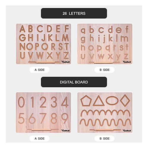 - The Toys is made with a combination of wood and non-toxic which makes it safe and brings no harm to babies. It makes for an ideal gift for kids to kickstart their learning of ABCD, 0 to 9, Patten from the recommended 2+ years up..
