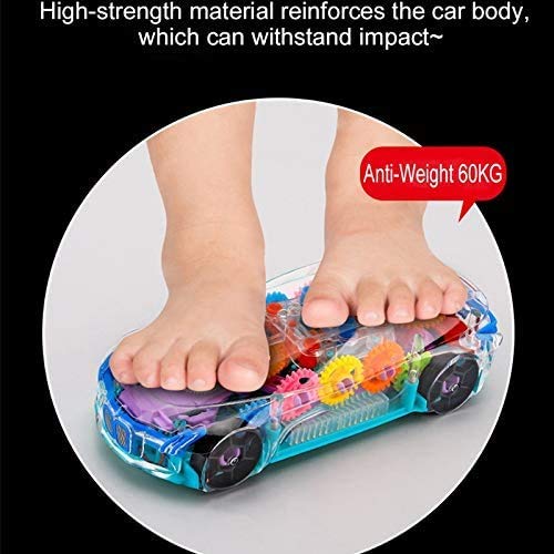 Flashing Lights car with functions: Forward/ Backward, Stop : Required AA batteries. Concept racing Car with Transparent design, and 360 Degree Rotation.