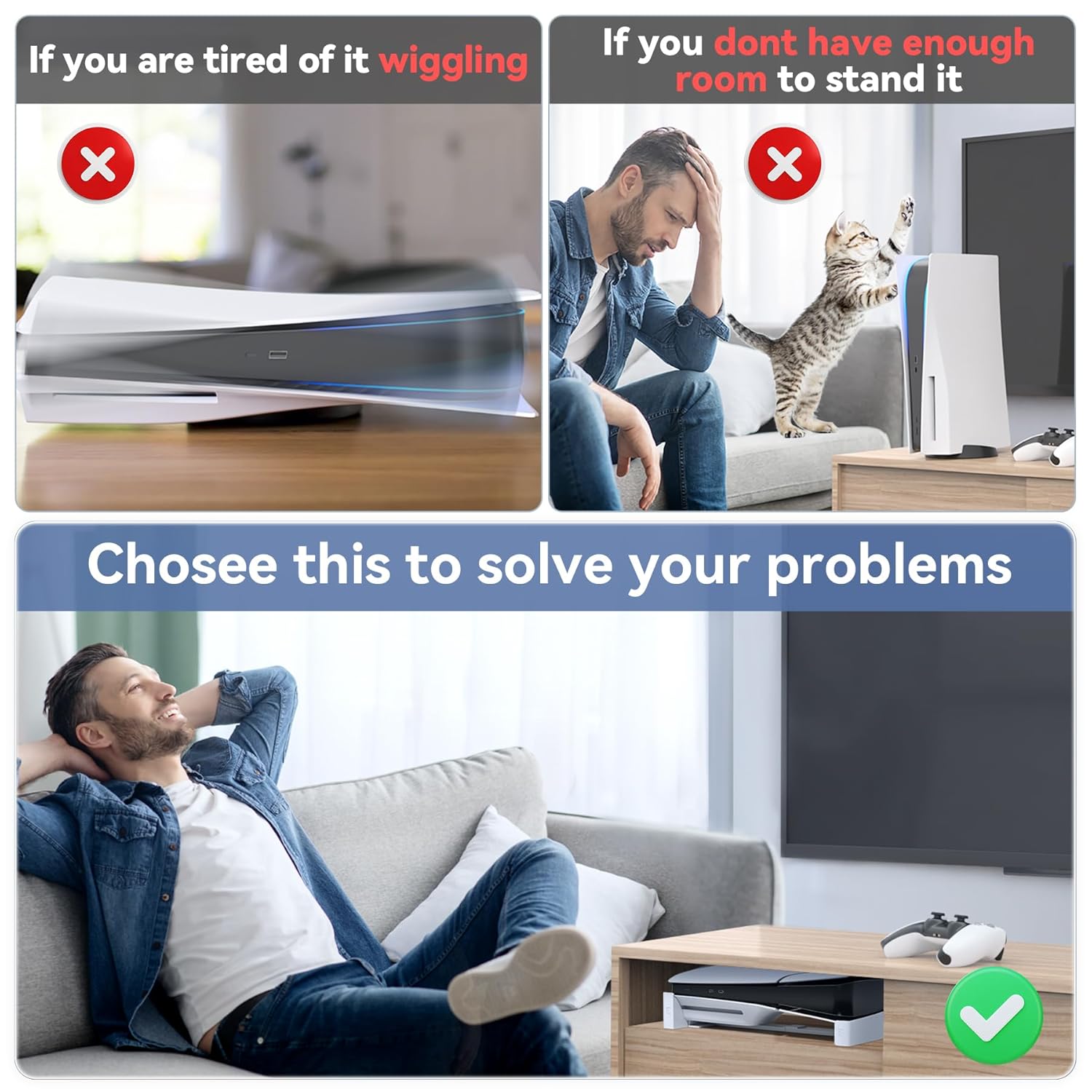 [ Scalable Stand Fits PS5/ PS5 Slim/ PS5 Pro Versions] The PS5 side stand is compatible with both PS5/Slim/Pro Digital Edition & Disc Edition Consoles (EVA foam for PS5 Digital), by stretching and shrinking the left and right stands,and according to the type on the stand to install the designated slot, then secure your ps5 console on PS5 slim stand with fixed crew. for PlayStation 4 Console