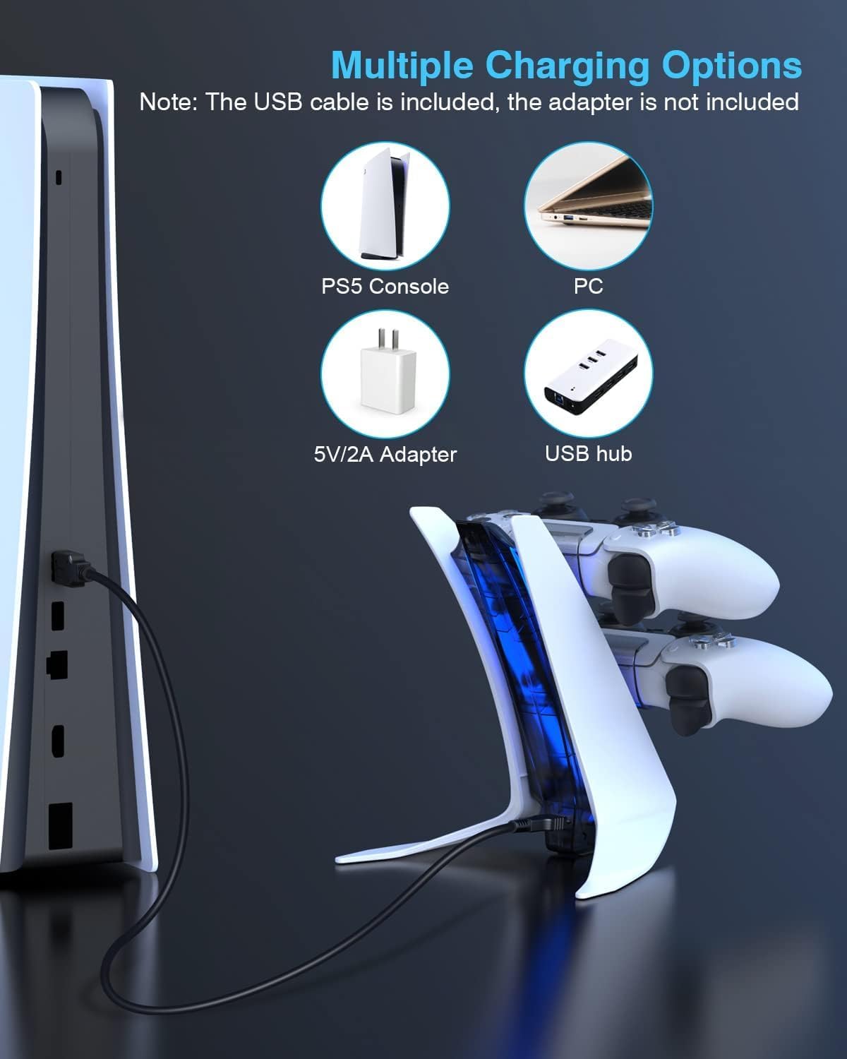 DESIGN: Compact charging dock that serves as an organised storage station for your PS5 controllers