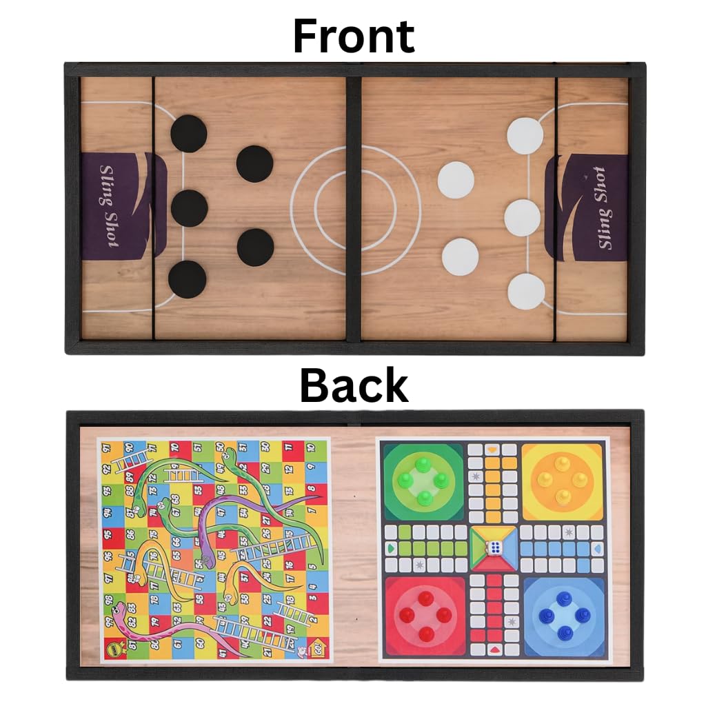 ✅ Fast-Paced Sling Action Game – Shoot pucks through the center gate using the elastic band. Be the fastest to clear your side and win!