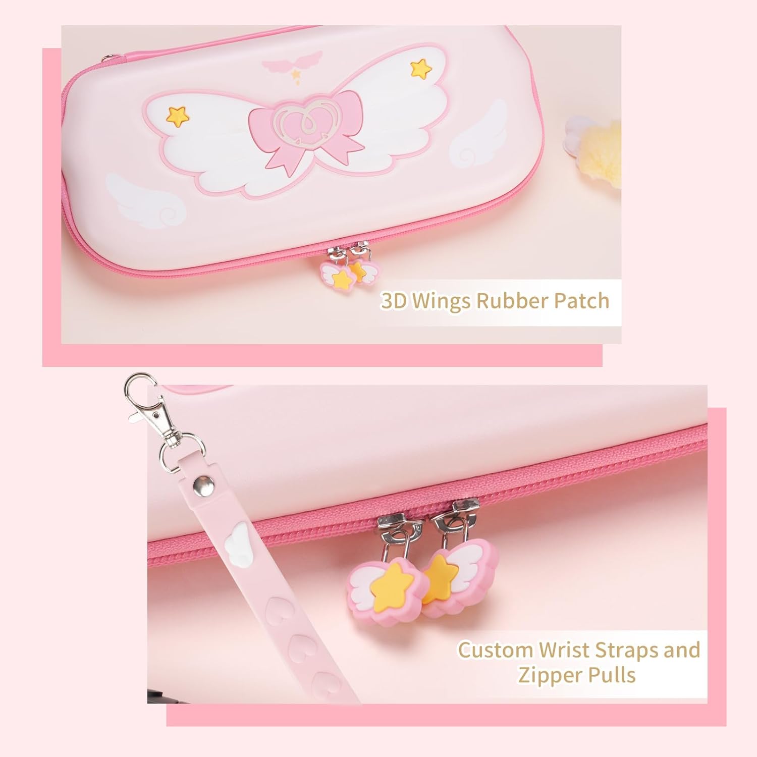 Original Deisgn, Trendy Color Scheme: Switch 2 storage case is designed with cherry blossom pink color, the cute star wing magic array pattern sign is practical and beautiful, simple and advanced appearance, safe and durable. Nice gift for game player