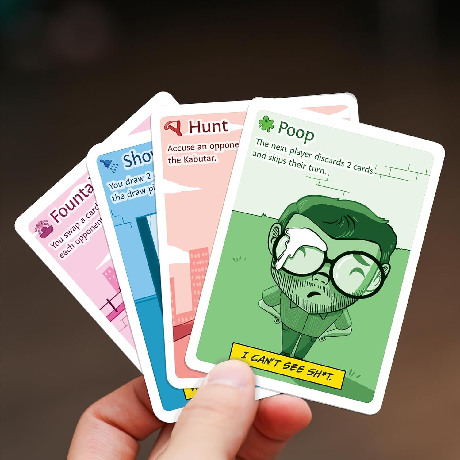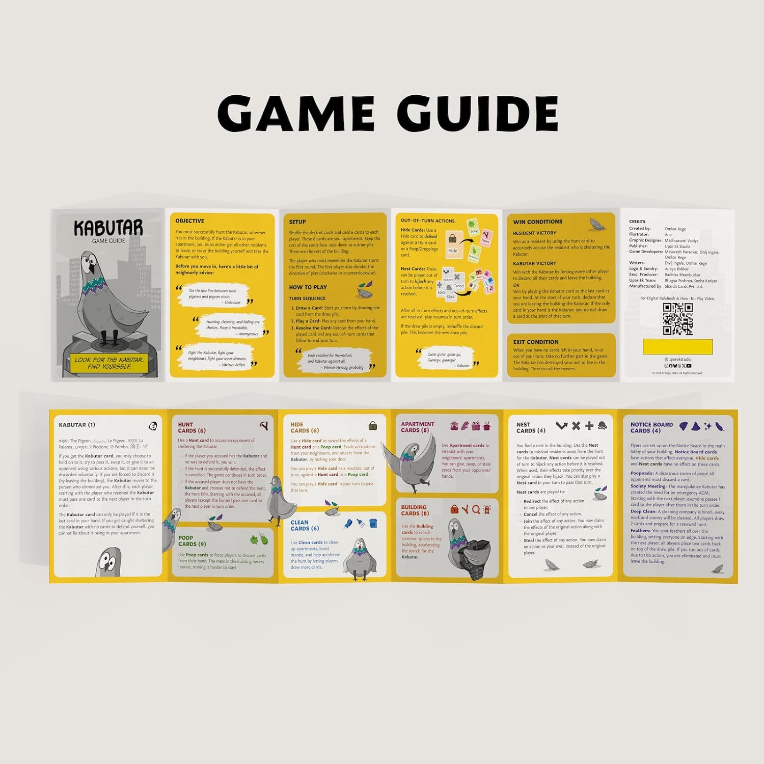 HILARIOUSLY RELATABLE THEME & UNIQUE ARTWORK: Finally, a game that understands the struggle! Each of the 52 cards boasts unique, comical illustrations and witty quips depicting the epic (and often absurd) battle against the building’s Kabutar. Hunt, Hide, Poop, Clean – the actions feel cathartically familiar. Comes with a beautifully illustrated game guide to fully immerse you in this unreasonable bird’s reign of terror!